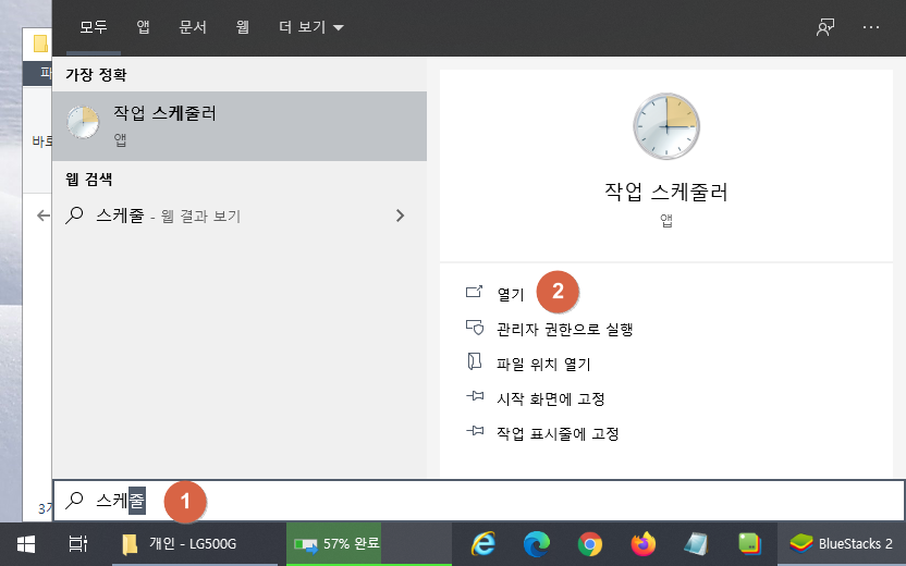 ① 작업 스케줄러 실행 (윈도우 키 --> 스케줄 입력 후 엔터