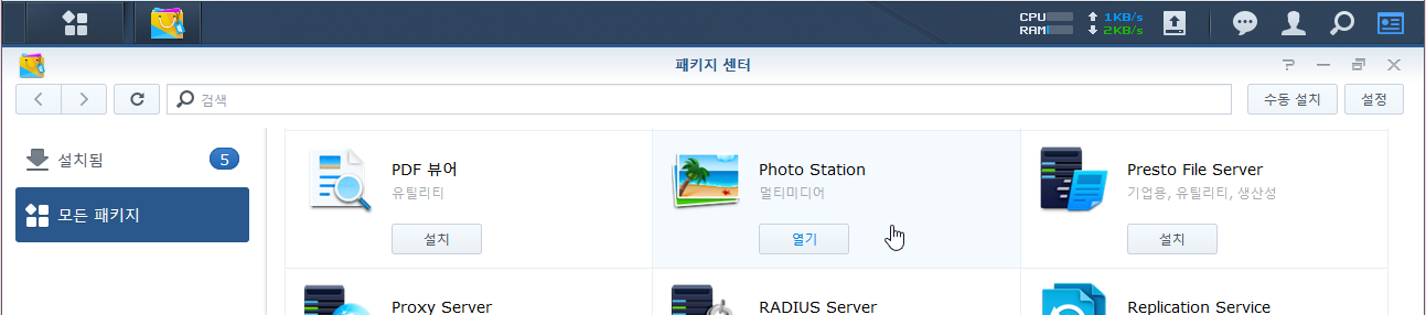 ① 패키지 센터에서 Photo Station 을 설치한다