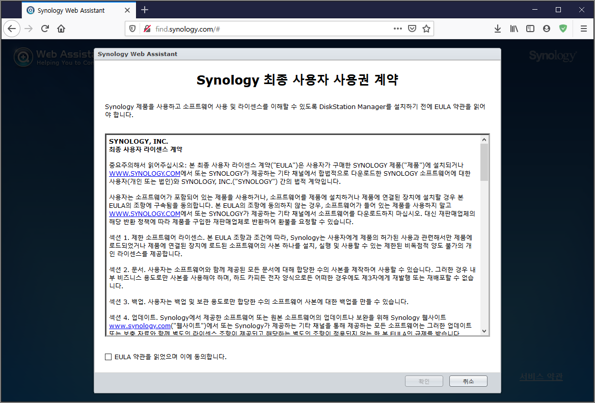 ④ 디스크 지워짐 경고 확인후 DiskStation Manager 설치