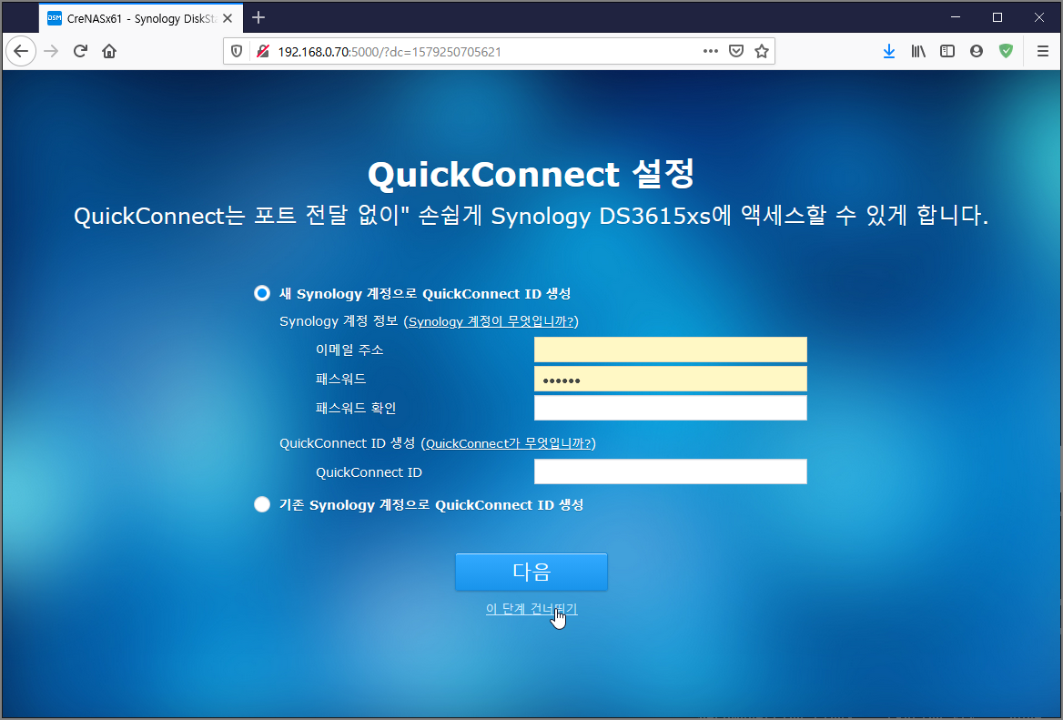 ① 192.168.0.70 번 아이피에 DS3615xs 장비가 검색 되었습니다.