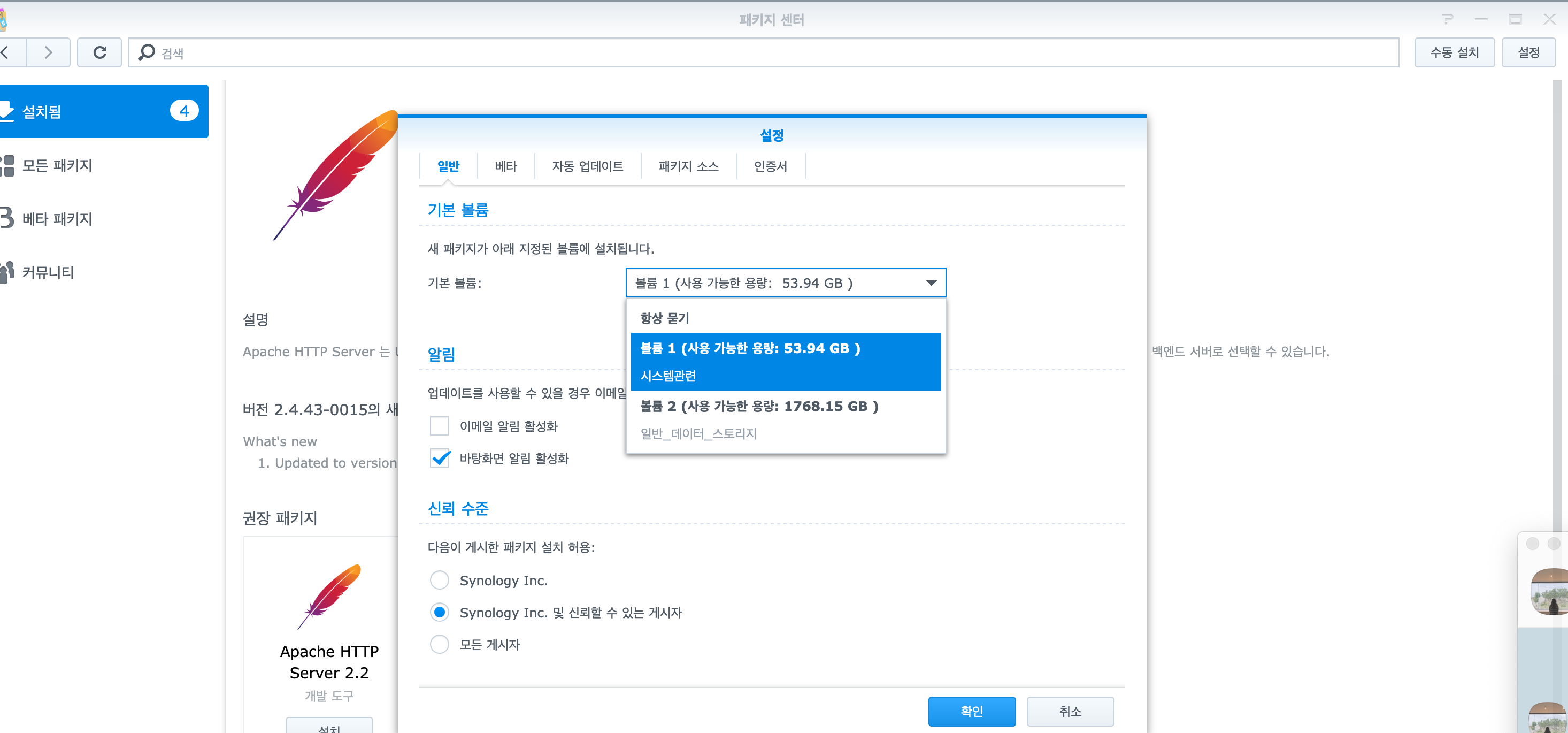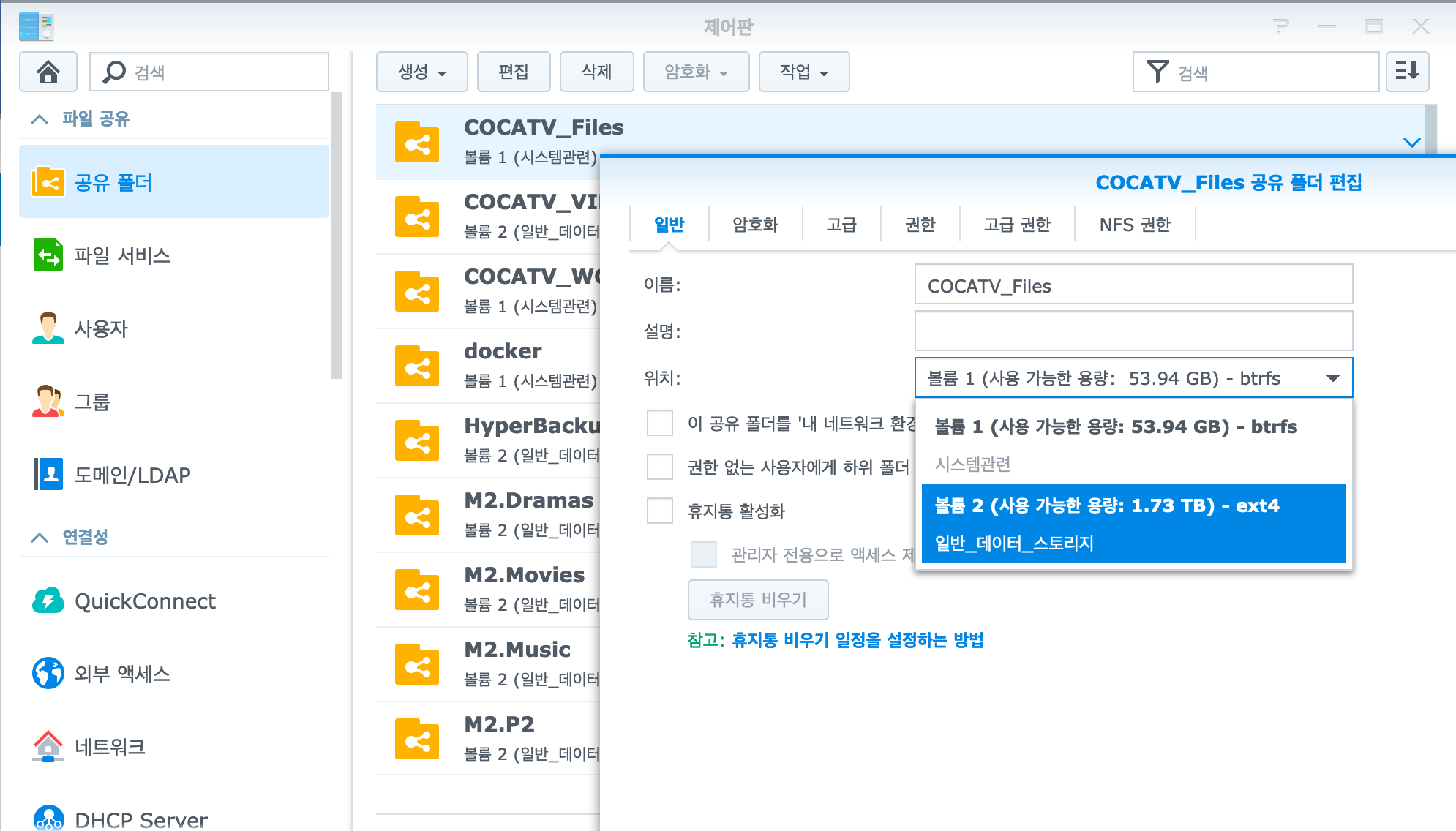 시놀로지 디스크 장착 및 DSM 설치 후, 1st 할일 - 저장소/볼륨/공유폴더 생성 (0) | 2020.08.08 |