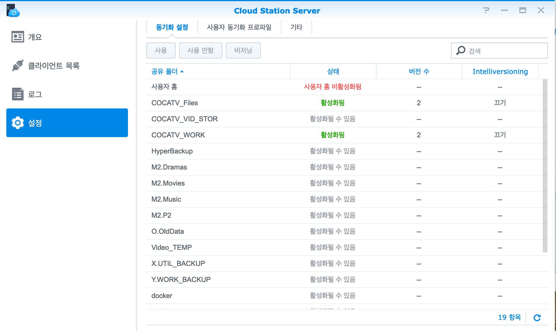 클라우드 스테이션(cloudstation) > 설정