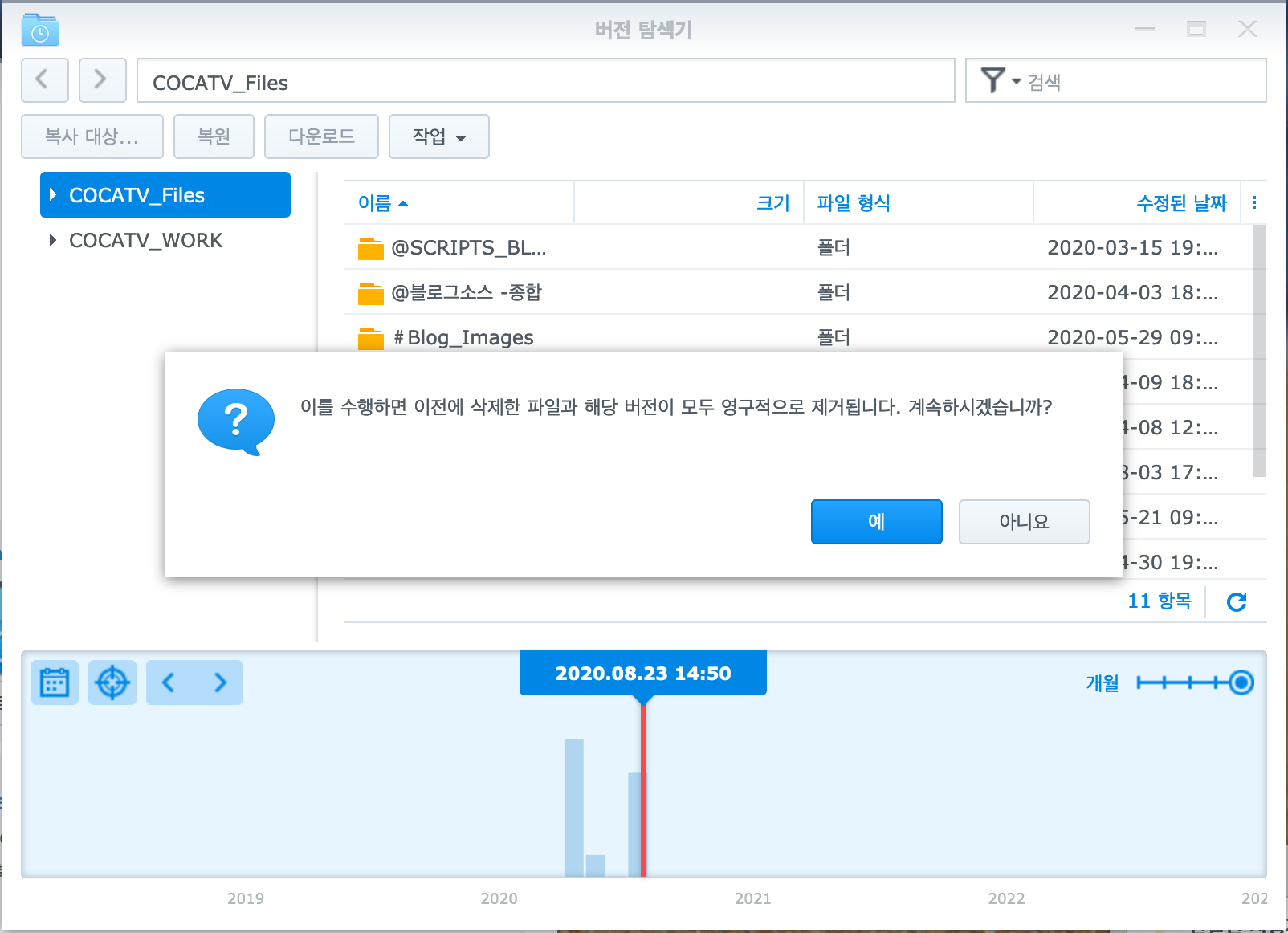 이상으로 .. 클라우드스테이션의 버저닝 설정 및 버저닝 백업 파일 삭제 방법이였다.