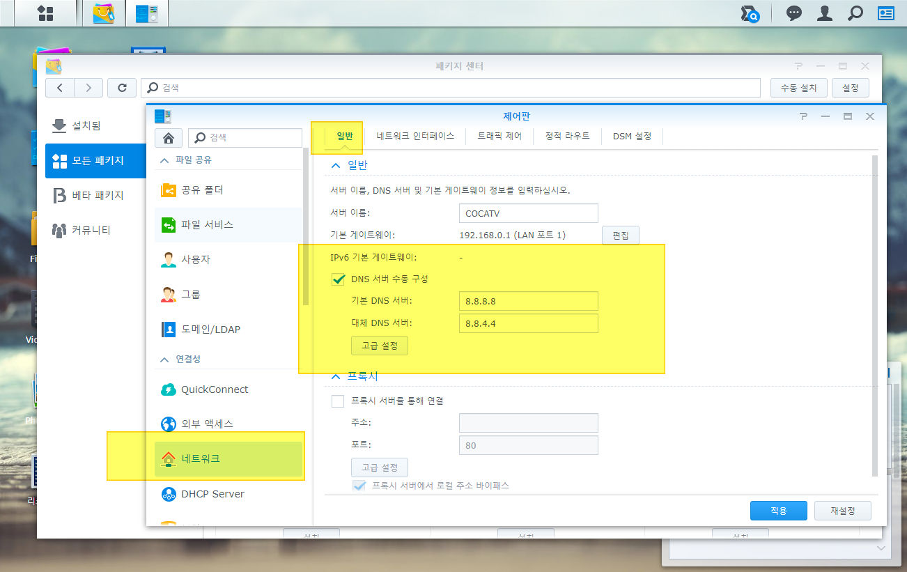 또는 패키지 센터에서 synocommunity가 로딩되지 않는 오류가 생긴다면