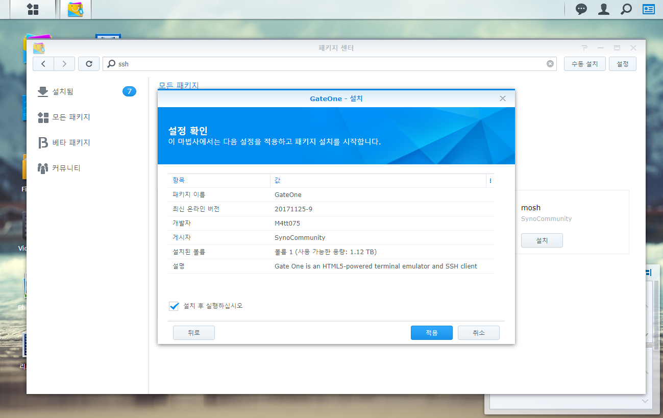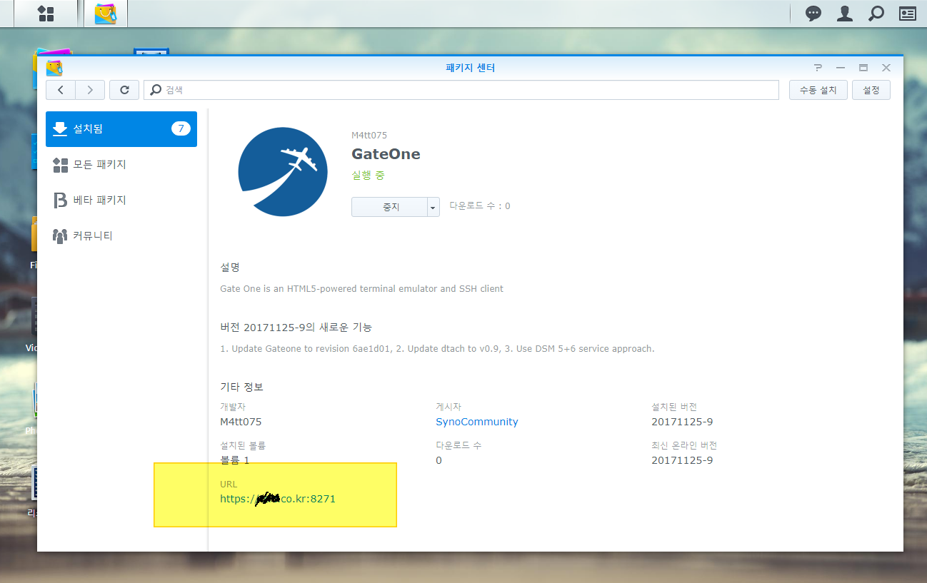 설치된 GateOne을 패키지 센터, 설치됨에서 확인하여 열기 클릭